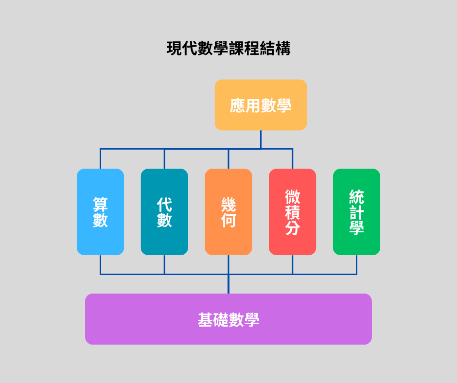 現代數學教育課程架構圖:整合傳統數學概念與現代教學方法。數學課太硬?其實可以教得更有感!