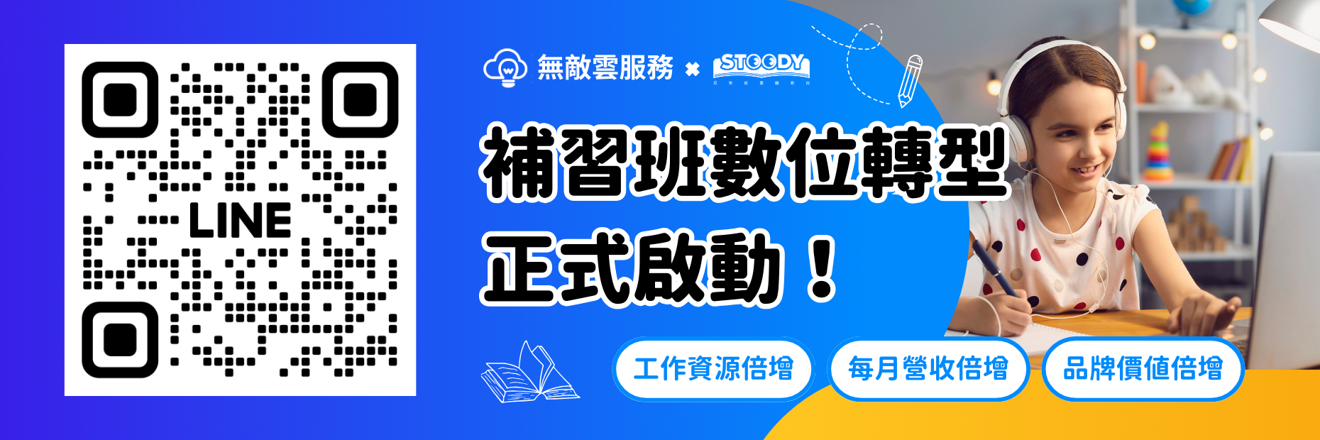 加入「STOODY × 無敵雲」,讓您的補習班數位轉型正式啟動,一起用更低的成本,為自身增加收益,創建品牌永續價值!